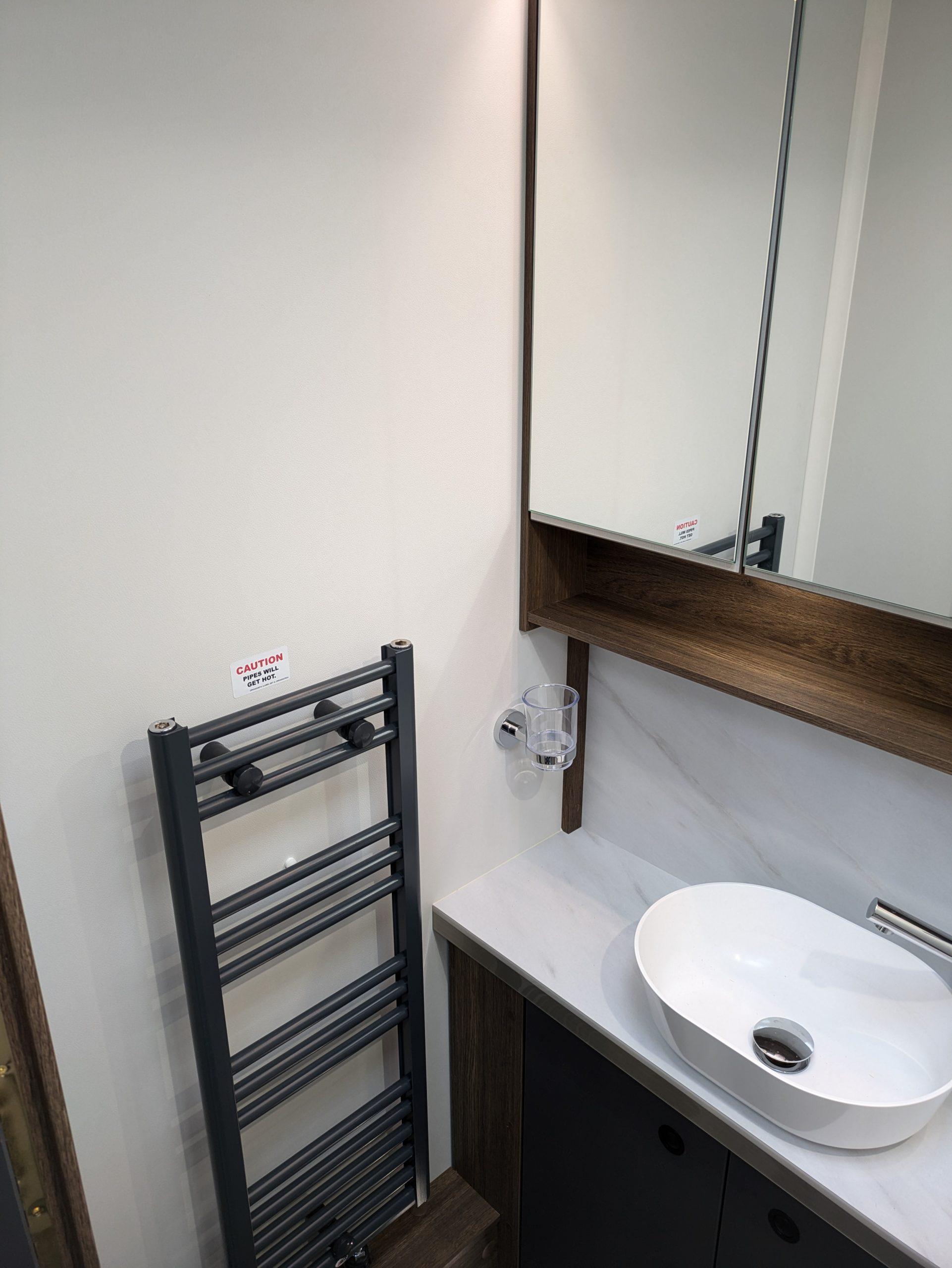 • Alde 24-hr multi-programmable central and water heating system. Runs on gas, electric (up to 3.15KW) or both with new easy-to-use LCD touchscreen control with night-time display setting. Now with automotive-standard Glycol G13 Antifreeze coolant