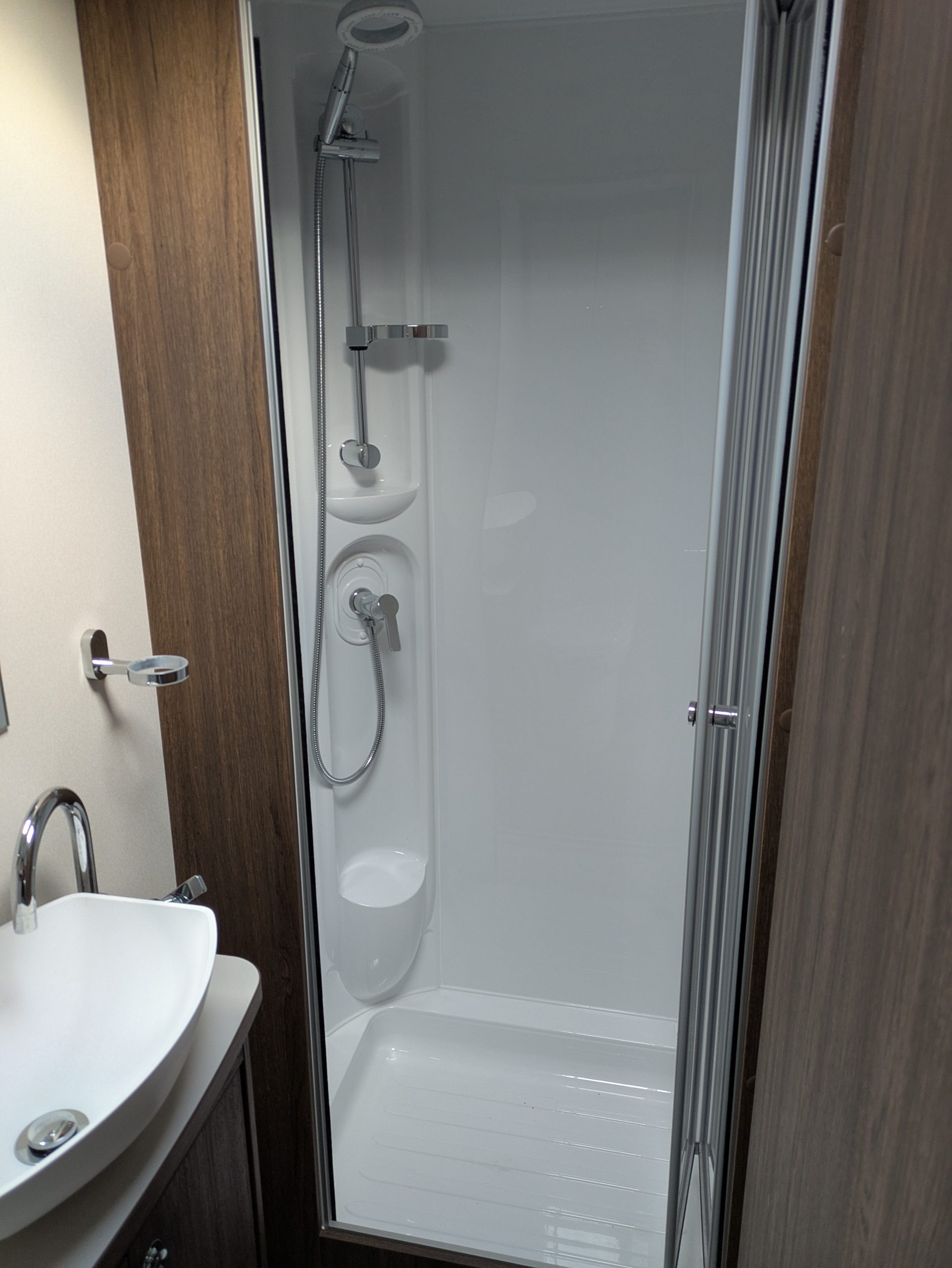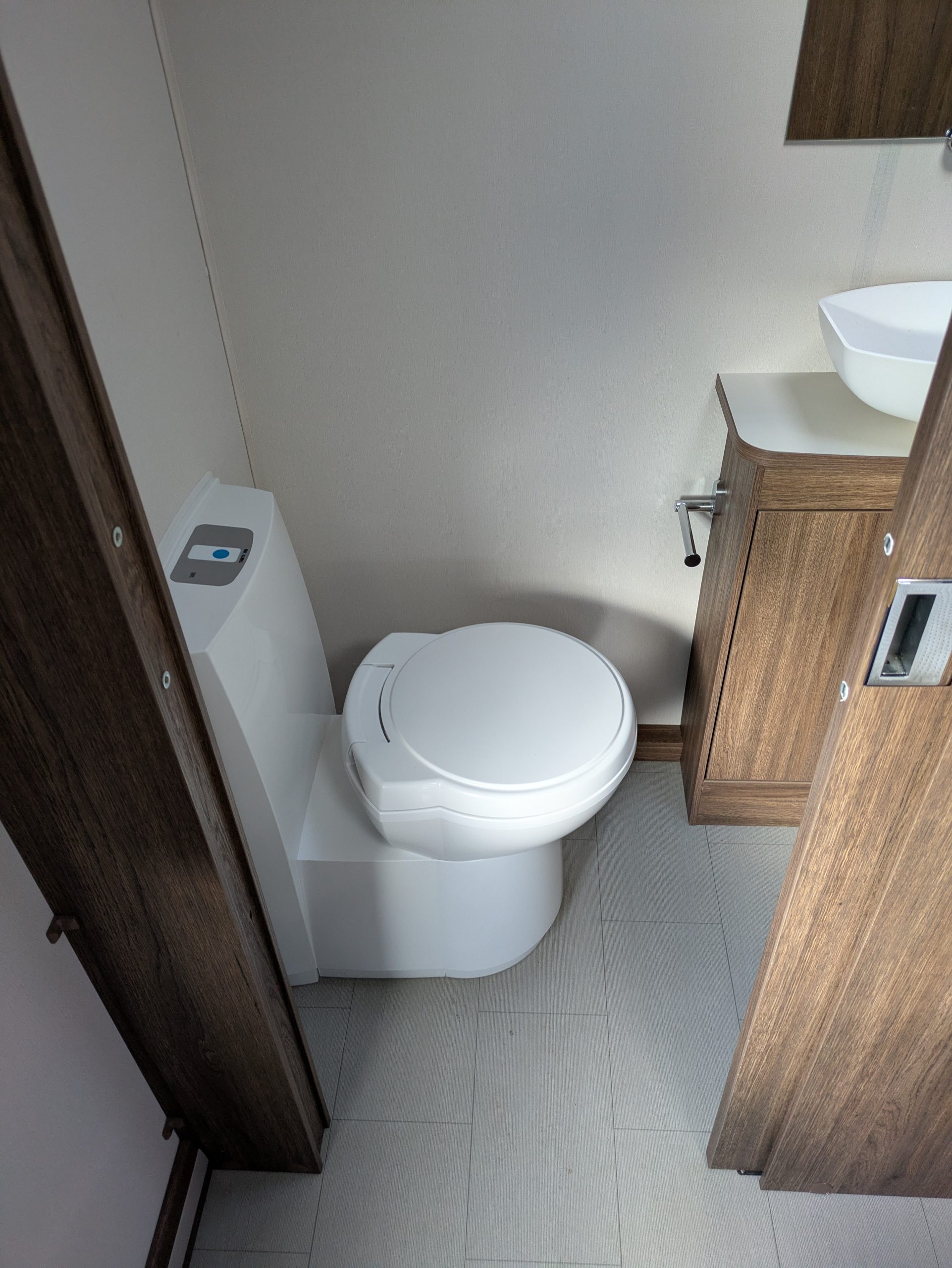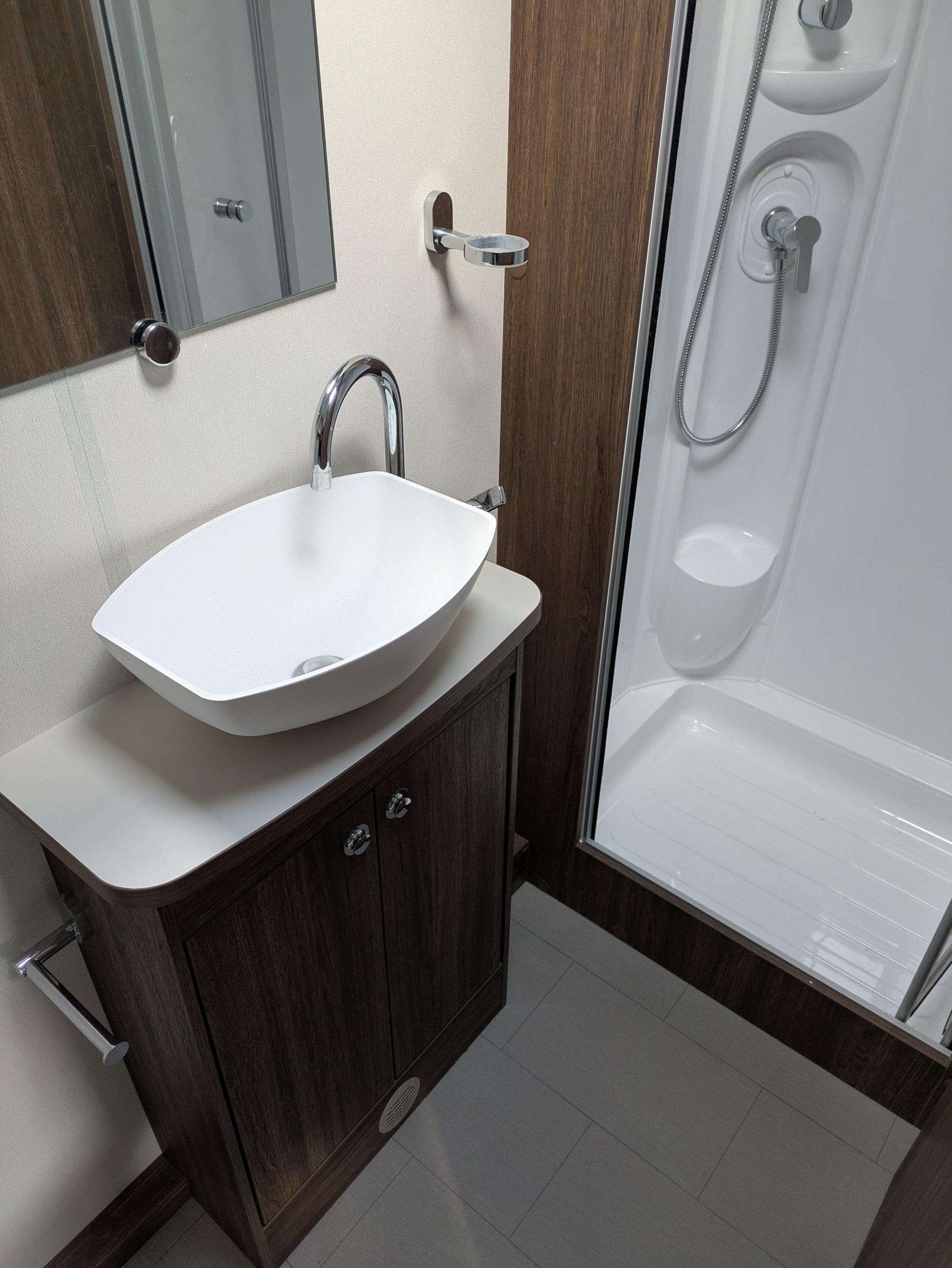 Transverse island bed with full end washroom.